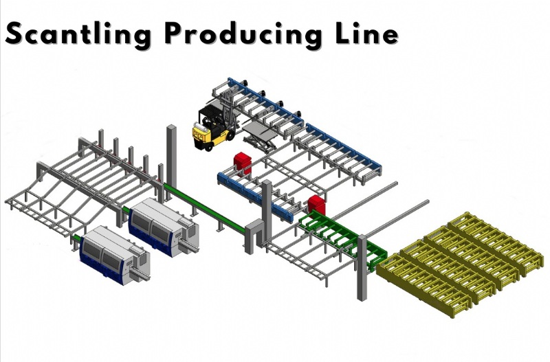 Process Description 1. 80m per minute high speed moulder 2. 2 Layers chain conveyor and switcher specified species and classify the timber then feed into glue applicator. 3. Glue applicator with feeding speed of the lamella 70-120m per minute 4. Auto flip mechanism and pusher feed the materials into roller conveyor cart. 5. Roller conveyor cart on switch rail system to separately feed the timber into every horizontal press. (Total 4 sets of horizontal press) 6. Timber both end cut by end saw system and fed into stacker.