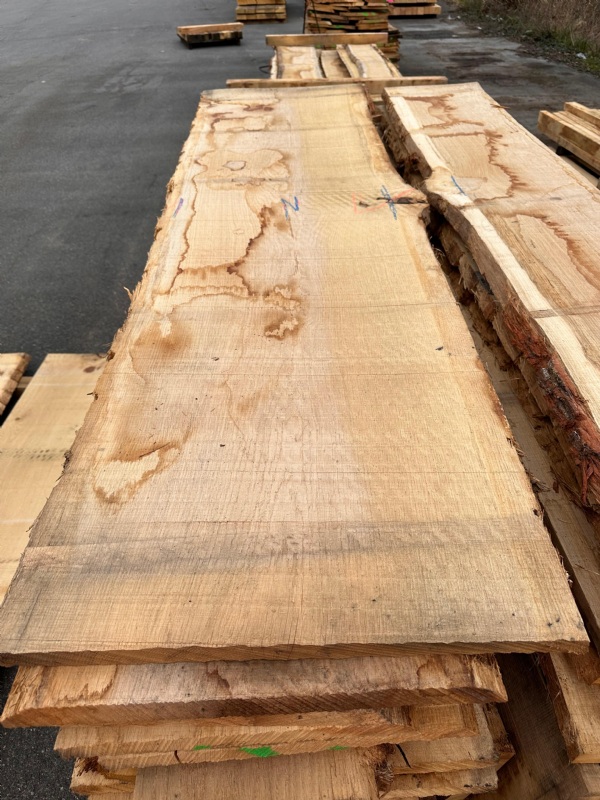 QS1 Selected Boards of white Oak sawn timber shows the following marks and character details: - Sound knots less than 5 mm, permitted if fewer than eight. - Sound knots with a diameter between 5 and 25 mm, permitted where equivalent to one knot of less than 50 mm. - Permitted with a reduction: one not intergrown or unsound knot less than 25 mm, one isolated knot less than 20% of the board width, ring shake, frost crack, bark pocket, unsound sapwood if isolated, brown pith less than 25%, sapwood with holes. - Excluded: included sapwood, rot.