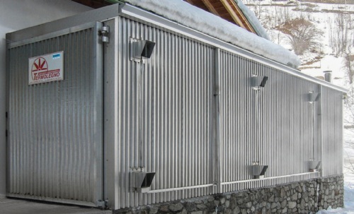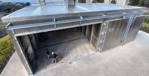 The lifting sliding door of the kiln is made with sturdy aluminum structures. The special groove where the strong rubber seal is installed provides optimum tightening alongside the doorframe. Wood drying kiln door wall is of the same construction as the kiln and roof walls, using fiberglass insulation of 100 mm. The closing system is equipped with adjustable counterparts which enable the precise adhesion of the door to the kiln structure.