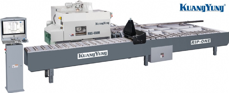 Main Features of Rip One + MRS-450M: *Ultra High Resolution Lens: Equipped with top and bottom 2 Megapixel color high Def Camera, which can capture data at 100 frames per second. *Max. Productivity: Processing 7~9 pieces of 3m long board per minute. *3D Board Profiling: Using the exclusive technology to capture 3D contour of each piece of wood, including thickness, defective side, bark, wood knot and crack. *Automatic Fence Skew Function: It allows for cutting a bent or irregular side of wood to increase 2~3% of yield.