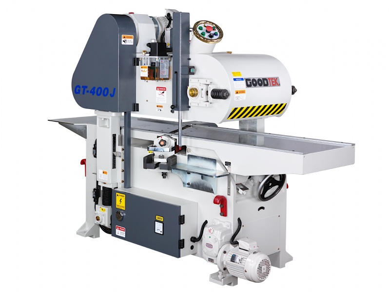 The GT-400J is our new model(high speed bevel spindle auto jointer), High speed means feed speed is 8~40m/min, bevel spindle is designed to be suitable for short workpiece processing(the minimum length of cut is 100mm), auto jointer because it like hand-jointer(only bottom spindle) but with automatic feed system. Compare with hand-jointer, the advantage of it is that its feed system is automatic(like double side planer), not by human. Its feed speed is very fast, compare with hand-jointer. And its result is almost the same with hand-jointer.
