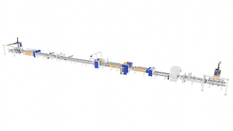 this machine is PUR flat paste production line, with auto loading, edge trimming, sanding, belt rush, oven, glue spreader and sheet table and roller press, auto cutting, edge trimming and panel turning and last the auto unloading. The whole line has a high degree of automation, suitable for large furniture, cabinets, wardrobes, wall panels and other factories. Lenght of machinee: 19.8M Total power:233KW Production speed: 1-17M/min Labor: 1-2 Applicable material: PET/PVC/ paper/HPL/CPL/Acrylic/Aluminum sheet etc. Glue: PUR hot melt adhesive Board: MDF/particleboard /WPC/SPC/ Metal board/cement fiber board
