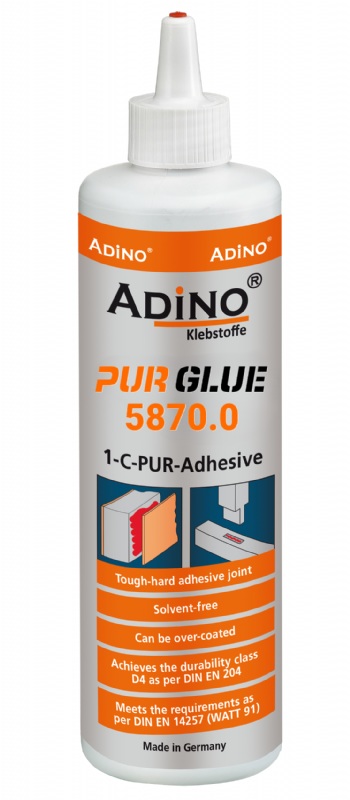 ADiNO PUR 5870.0 – 1-component PUR adhesive for wood and construction bonding. Provides strong, weather-resistant D4-class joints on wood, HPL, metal, or foam. Fast-curing, solvent-free, and high-strength—ideal for durable interior and exterior assemblies.